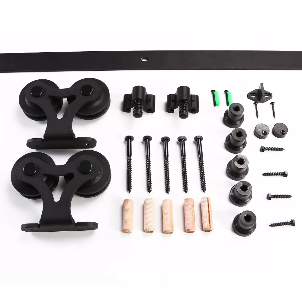 Buy LWZH Rustic Wood Door Bypass Sliding Barn Door Hardware Kit Black Steel Arrow Shaped Track Rollers for Interior Double Door up to 2098-12-31, and You will Save US $85.6 or 31%, Becuase You Just Pay for 190.52 not Full Price for 276.12