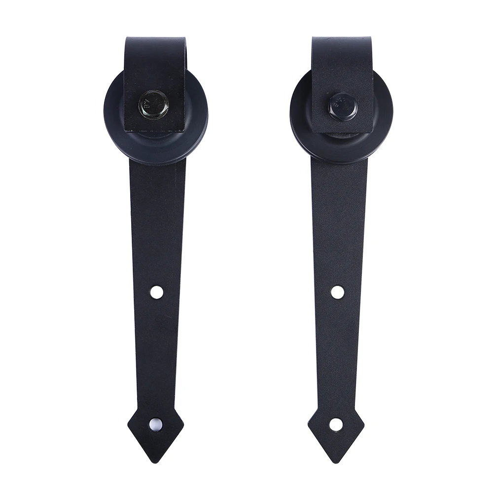 LWZH Closing Antique Style Steel Sliding Barn Door Hanger Track Hardware Kit Black Anchor Shaped with Big Roller for Single Door
