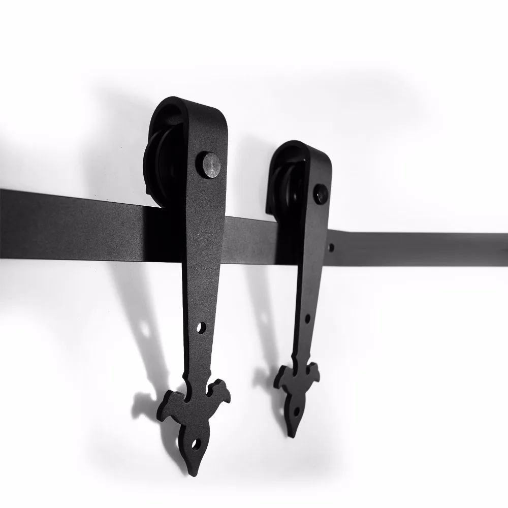 LWZH 4FT/5FT/6FT/6.6FT/9FT Classical Style Sliding Wood Barn Door Hardware Kit Flower Arrow-Shap with Big Roller for Single Door