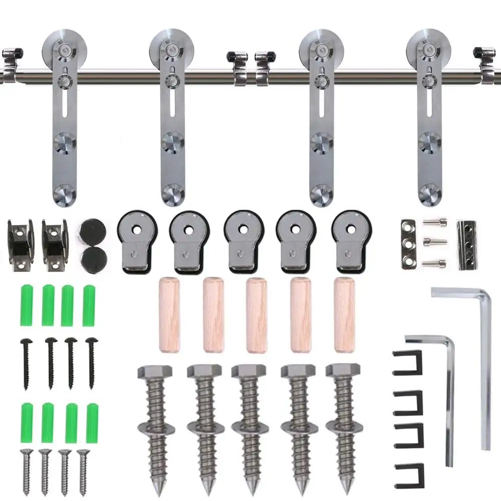 .Gallery of LWZH Stainless Steel Sliding Barn Door Hardware Basic Track Hardware Kit Round-Shaped with Big Roller Track Roller for Interio