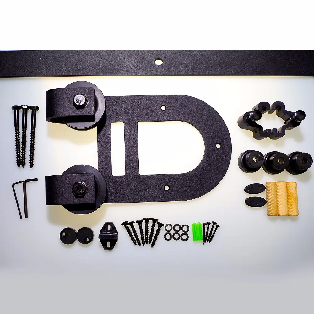 Addition Information of LWZH Sliding Wood Barn Door Carton Steel Hardware Kit Black Double Horseshoe-Shaped Hangers for Single Door 10FT/11FT/12FT