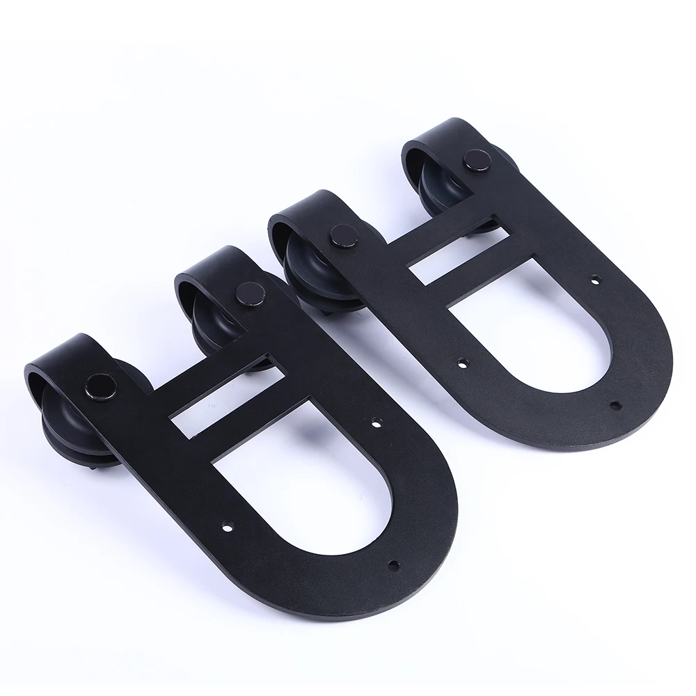 .Gallery of LWZH Sliding Door Barn Hardware Sets Double Horseshoe Shaped Roller Wood Door Rail Track Hardware Kits for Double Door 14FT/15FT