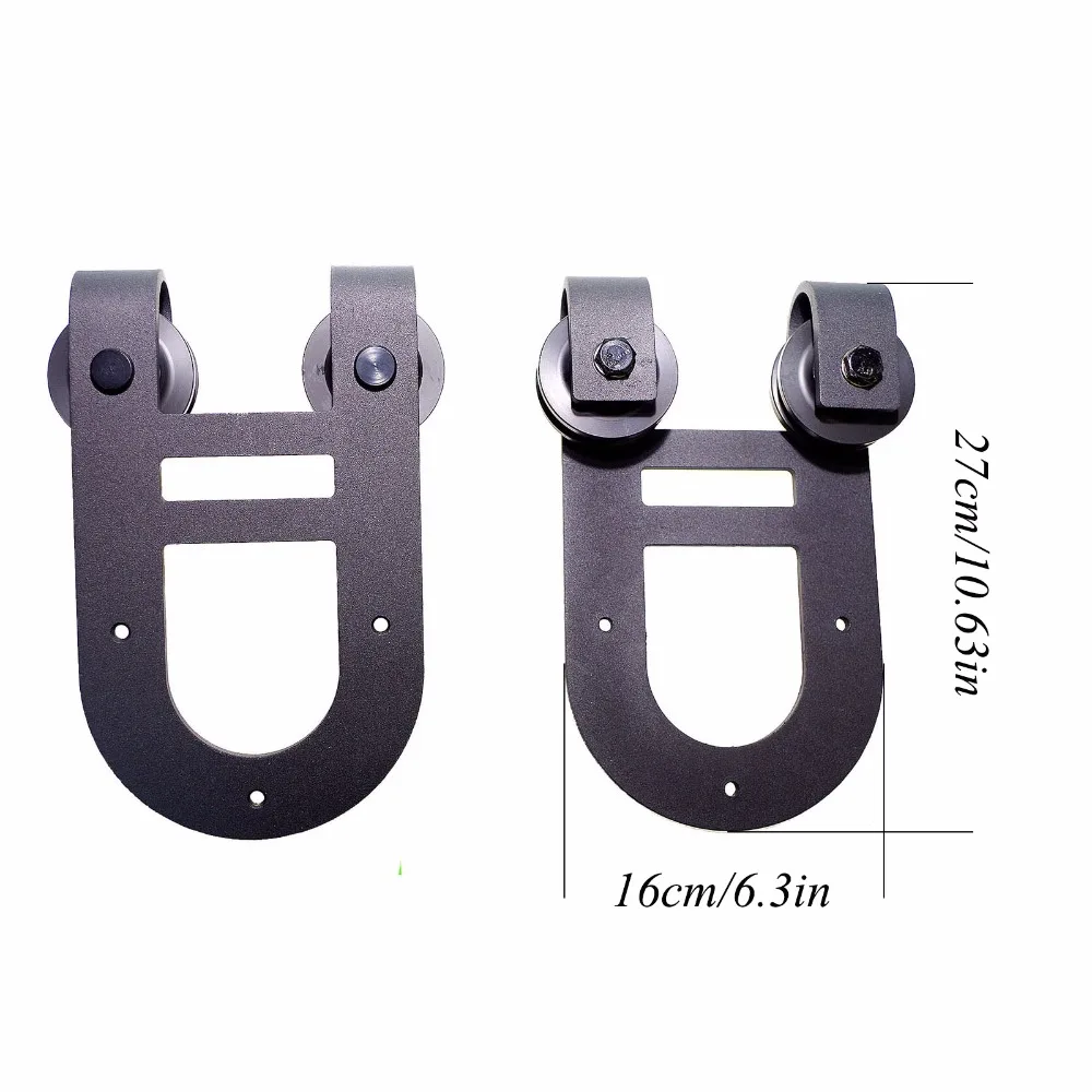 Addition Information of LWZH Sliding Door Barn Hardware Sets Double Horseshoe Shaped Roller Wood Door Rail Track Hardware Kits for Double Door 14FT/15FT